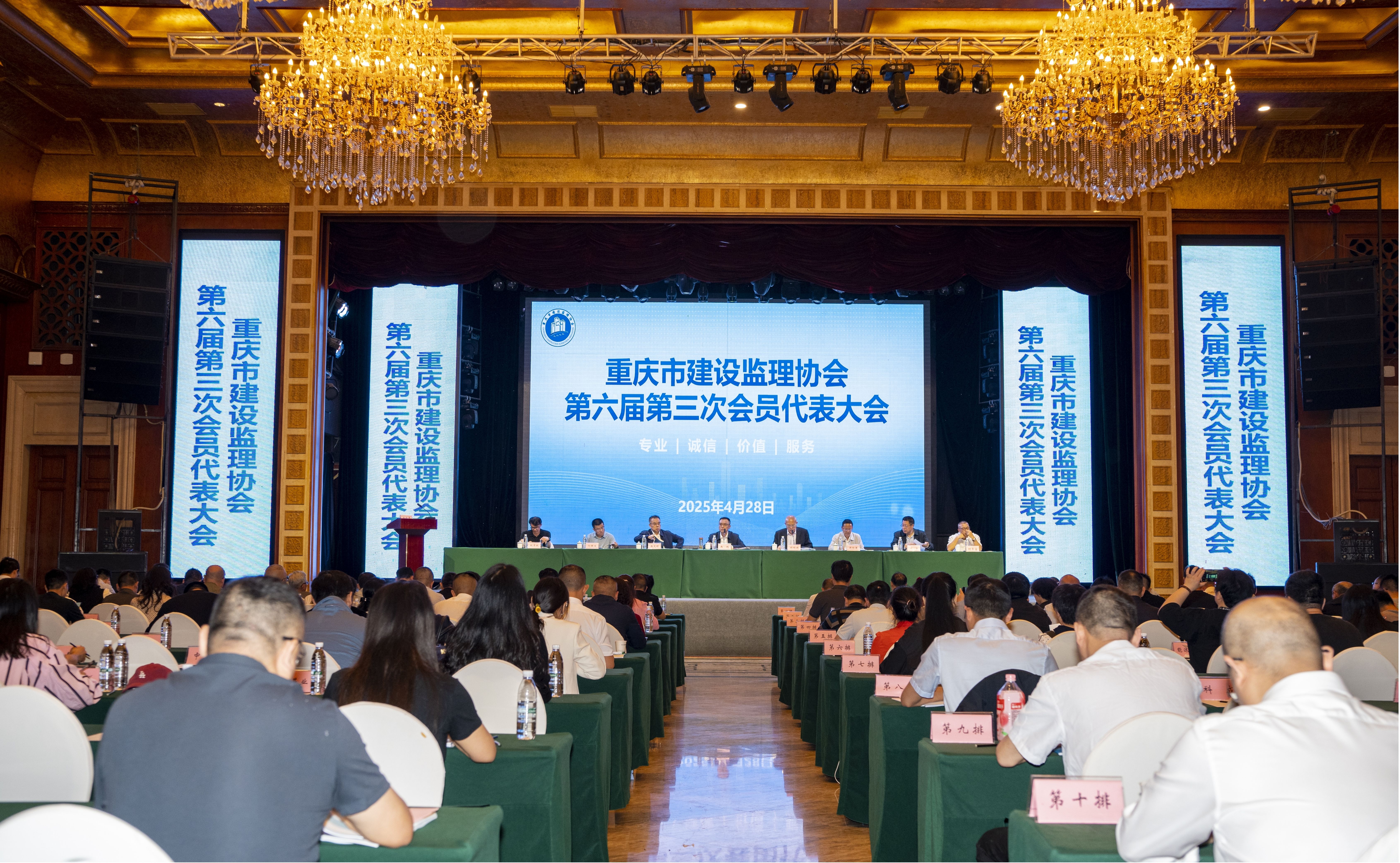 2025年4月28日,重慶市建設(shè)監(jiān)理協(xié)會(huì)第六屆第三次會(huì)員代表大會(huì)在岱江花園飯店召開。